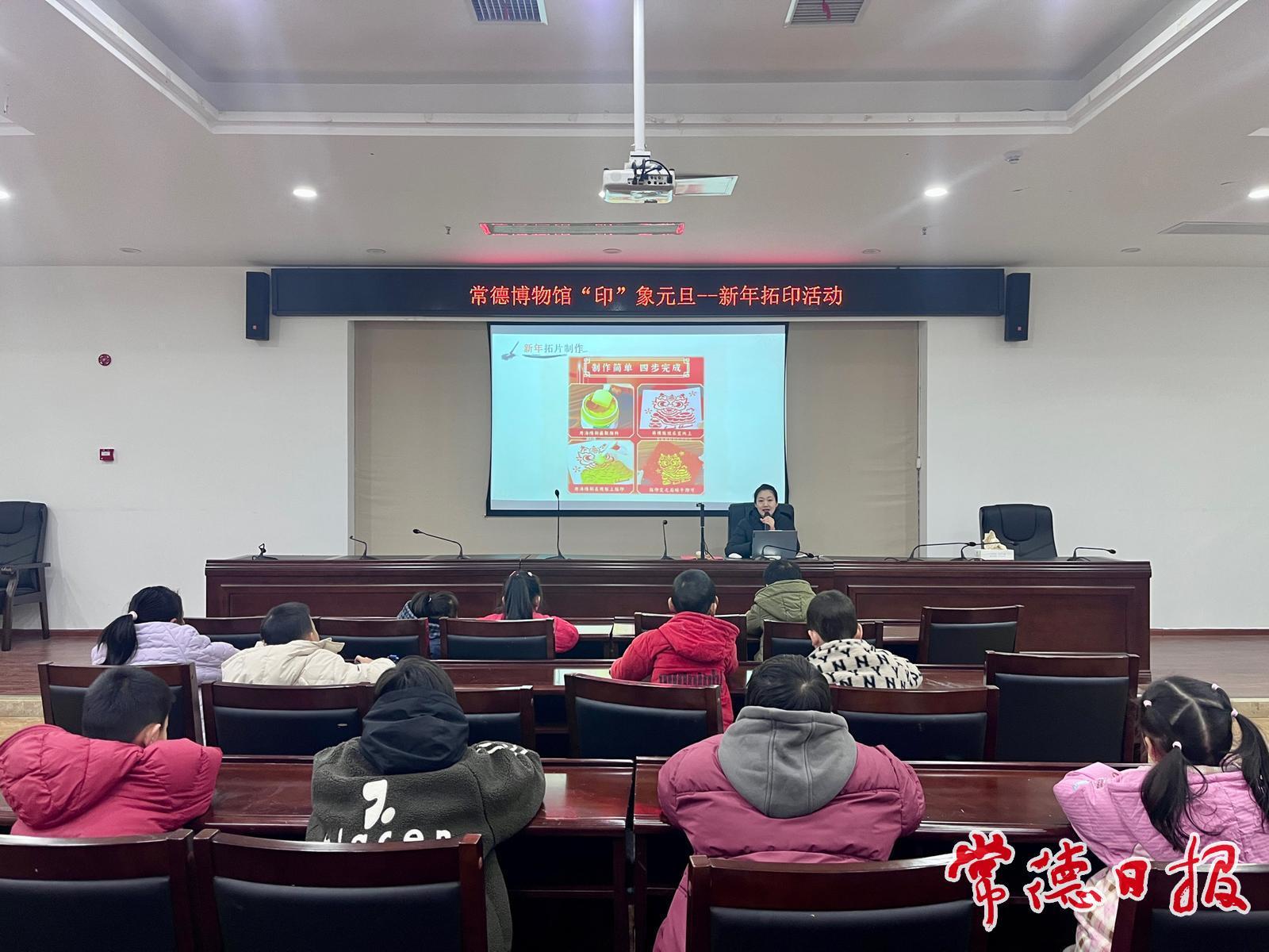 “举办‘印’象元旦拓印活动,初衷是让孩子们在辞旧迎新的特殊节点,通过亲手体验非遗技艺,感受传统文化的魅力。”博物馆工作人员告诉记者,传统文化的传承需要鲜活的载体,拓印动手性强、趣味性足,能让孩子们直观触摸历史的纹理,在金粉与纸韵中培养文化自信。“我们还会推出更多此类社教活动,让文物‘活起来’,让传统文化浸润更多孩子的心灵。”工作人员介绍,为丰富市民元旦假期文化生活,让更多人感受历史文化魅力,1月2日10时至11时,他们将持续开展《常德历史——史前探源》《常德历史——墟中觅史》《常德历史——汉后擷珍》公益讲解,带观众探寻常德千年历史脉络;1月3日10时至11时,《悲壮抗战英雄城——日军常德细菌战暨中日常德会战》专题展公益讲解将如期举行,通过珍贵史料让观众铭记历史、珍惜当下。