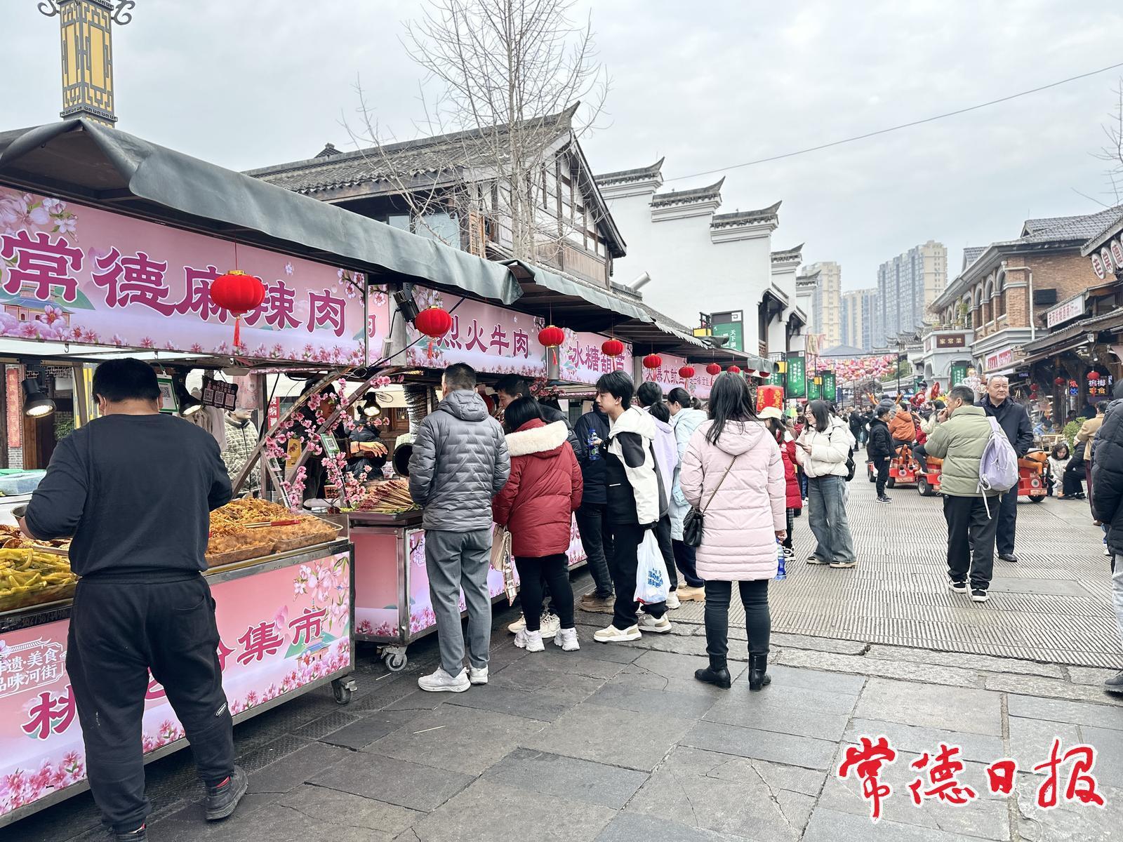 “桃花粉集市”热闹非凡,市民游客品尝常德风味小吃