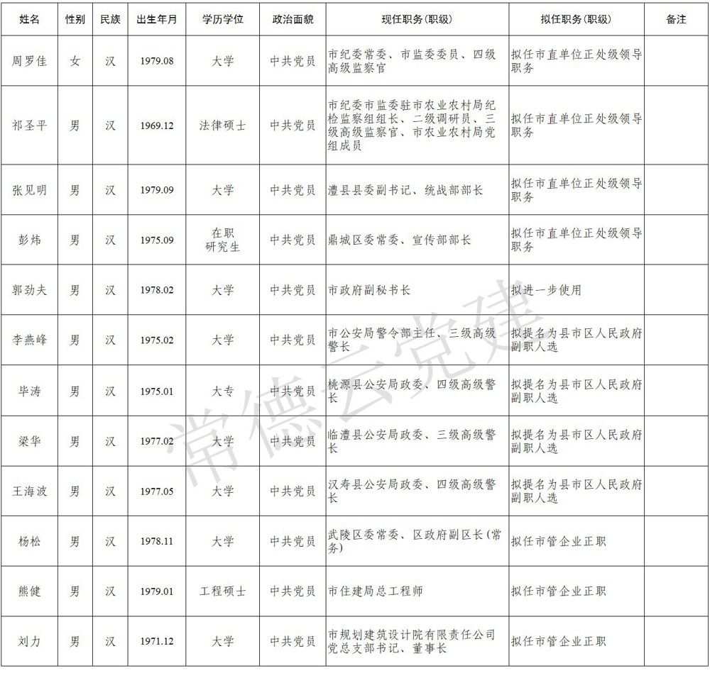 为了加强对干部选拔工作的监督,提高识别和任用干部的准确程度,现对市委常委会会议研究决定的下列拟任人选(候选人人选、提名人选)进行任前公示: