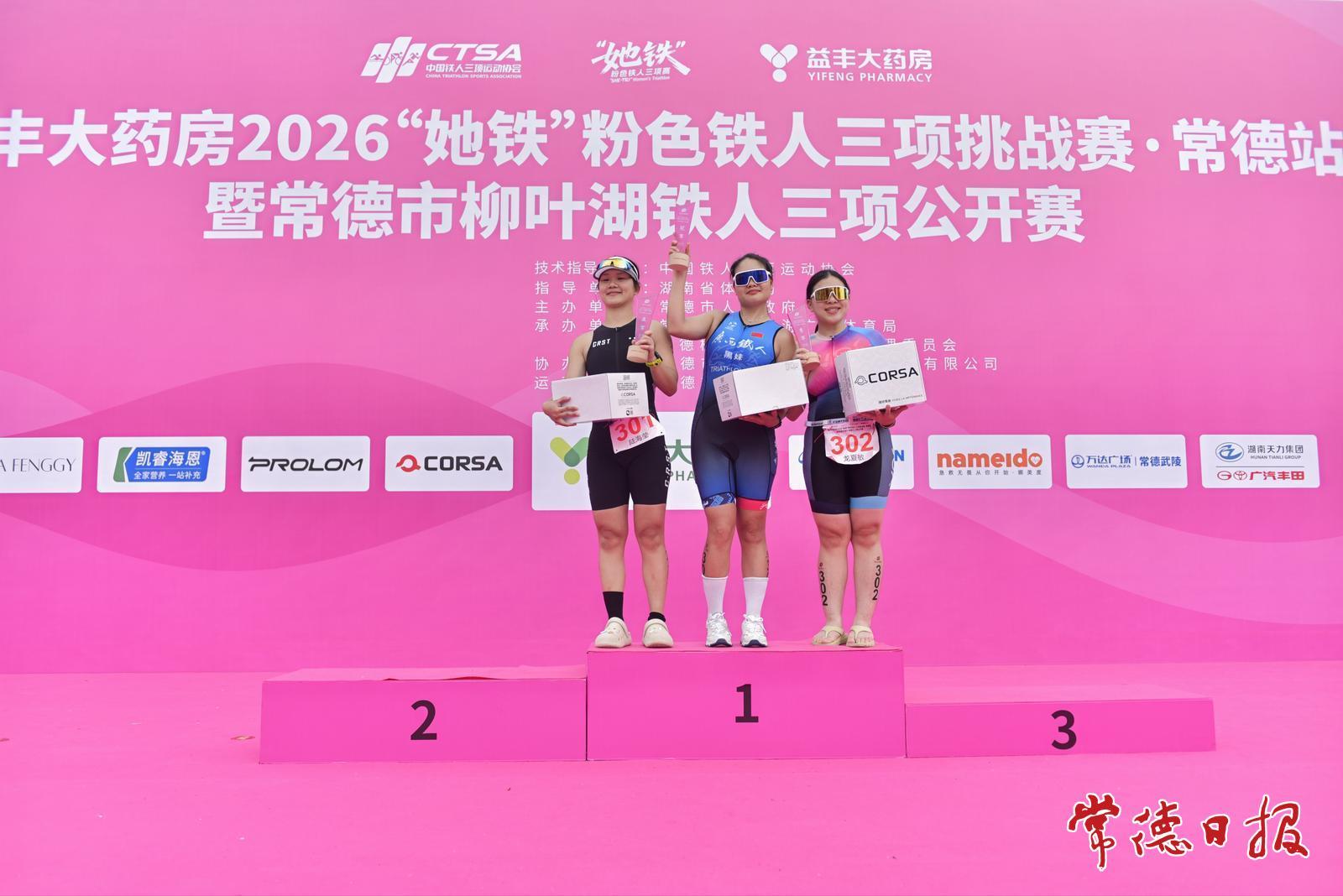 4月12日,益丰大药房2026“她铁”粉色铁人三项挑战赛·常德站暨常德市柳叶湖铁人三项公开赛在柳叶湖畔顺利举办。
