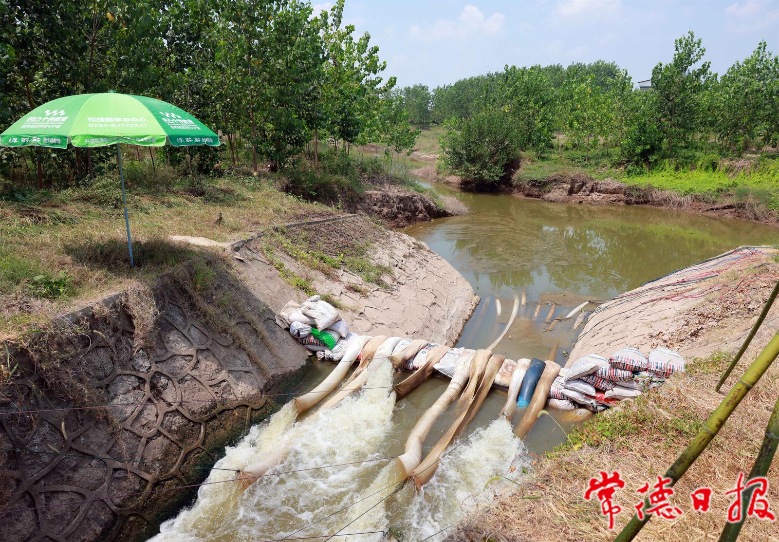 藕池河断流以来,安乡县三岔河镇通过在藕池河西支罗洲电排管下游筑坝抬高水位,抽水解决了三岔河镇罗洲村3000多亩农田干旱缺水问题