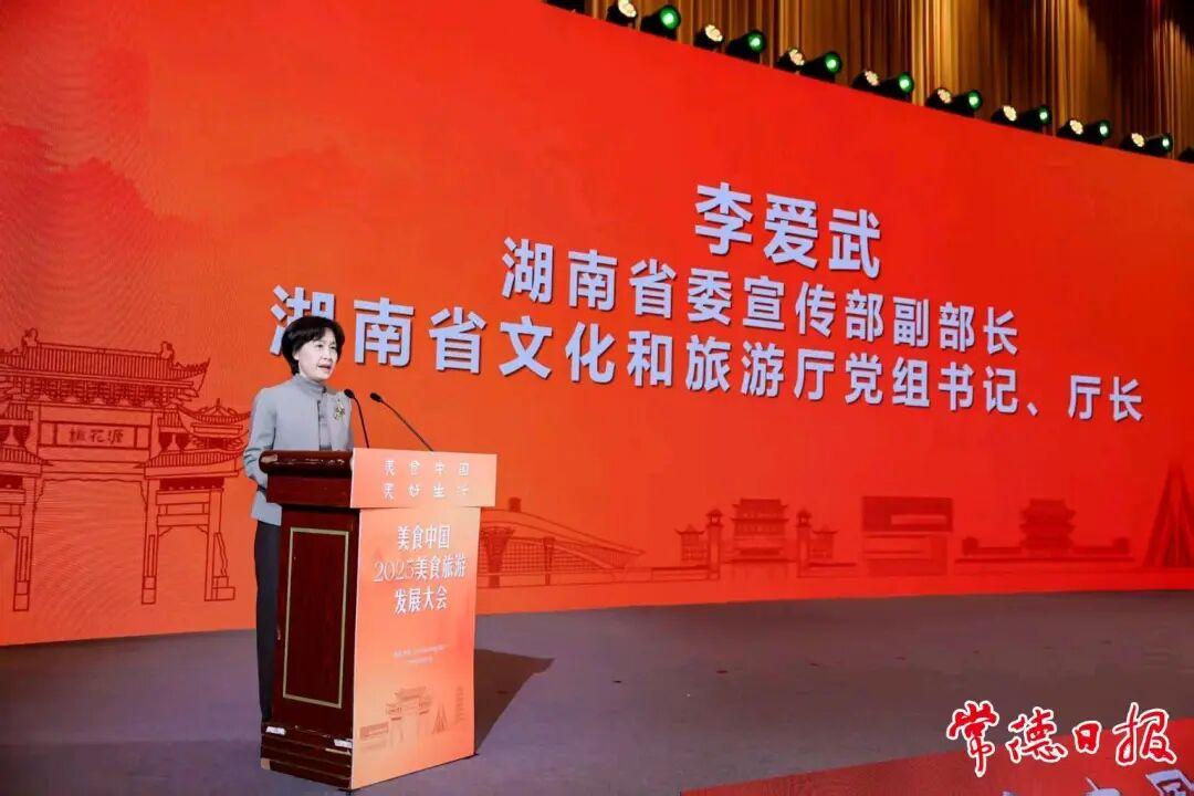 李爱武在致辞中指出,本次大会,既是对“民以食为天”传统的当代呼应,更是湖南以美食为笔、以文旅为卷,共绘融合发展图景的全新启程。发展美食旅游,核心在“融合”,生命在“创新”。湖南将以此次大会为新起点,持续推动美食与非遗、节庆、文创、科技等深度融合,以文化赋能味蕾,以科技提升体验,以创意打动人心,让湖湘风味历久弥新。