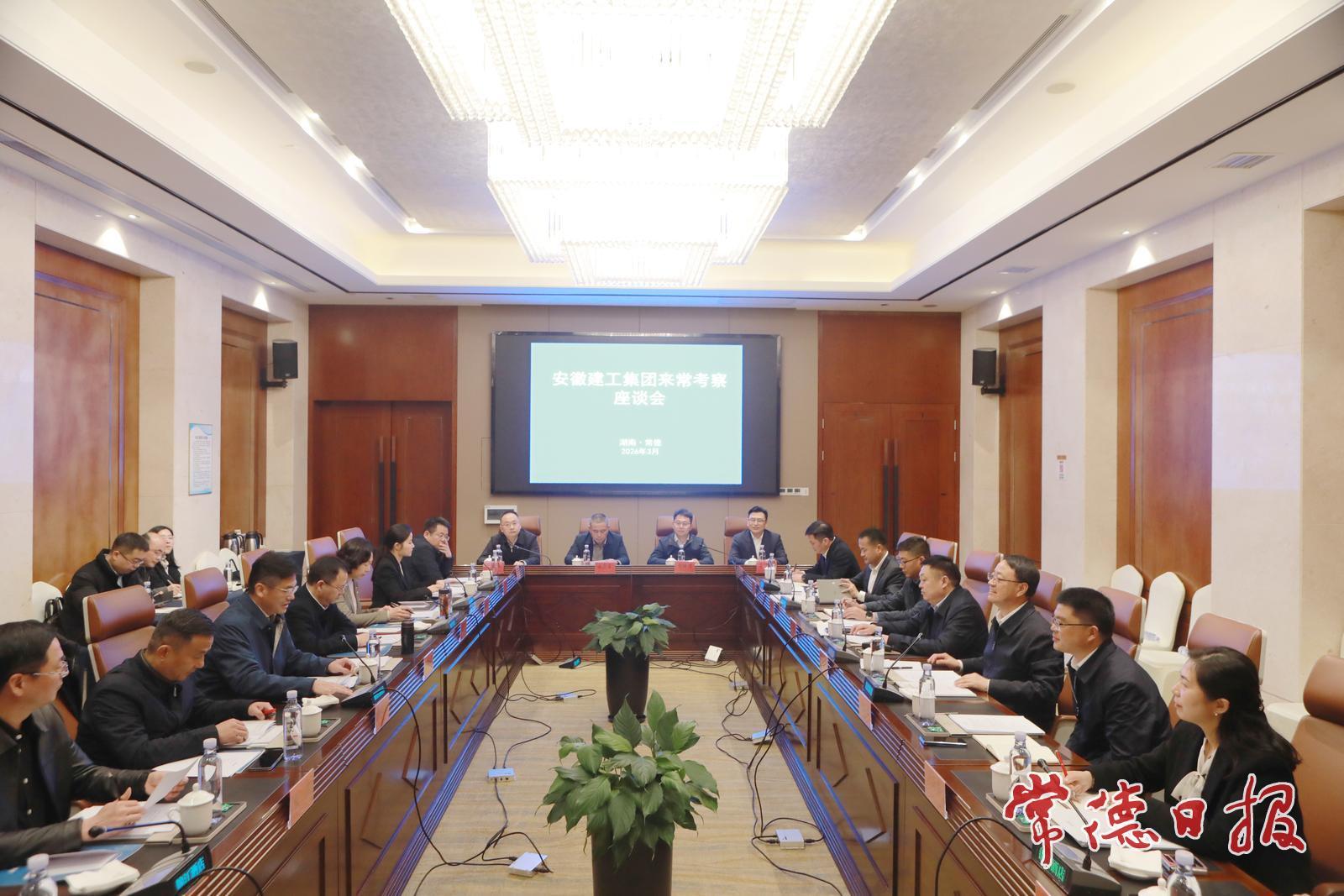 安徽建工集团党委委员、副总经理任杰,常德市领导黄旭峰、陈华参加座谈。