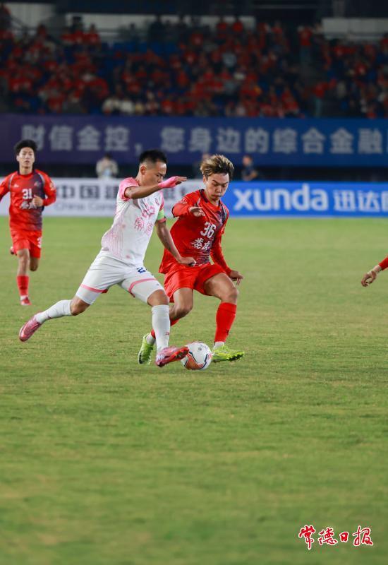 比赛转折点出现在第53分钟:常德队赵文荻射门被扑出,26号夏宇航如猎豹般插上补射入网,这粒进球也成为全场唯一进球。此后,娄底队掀起一轮又一轮的反扑浪潮,常德队门将王峰琦多次飞身救险。
