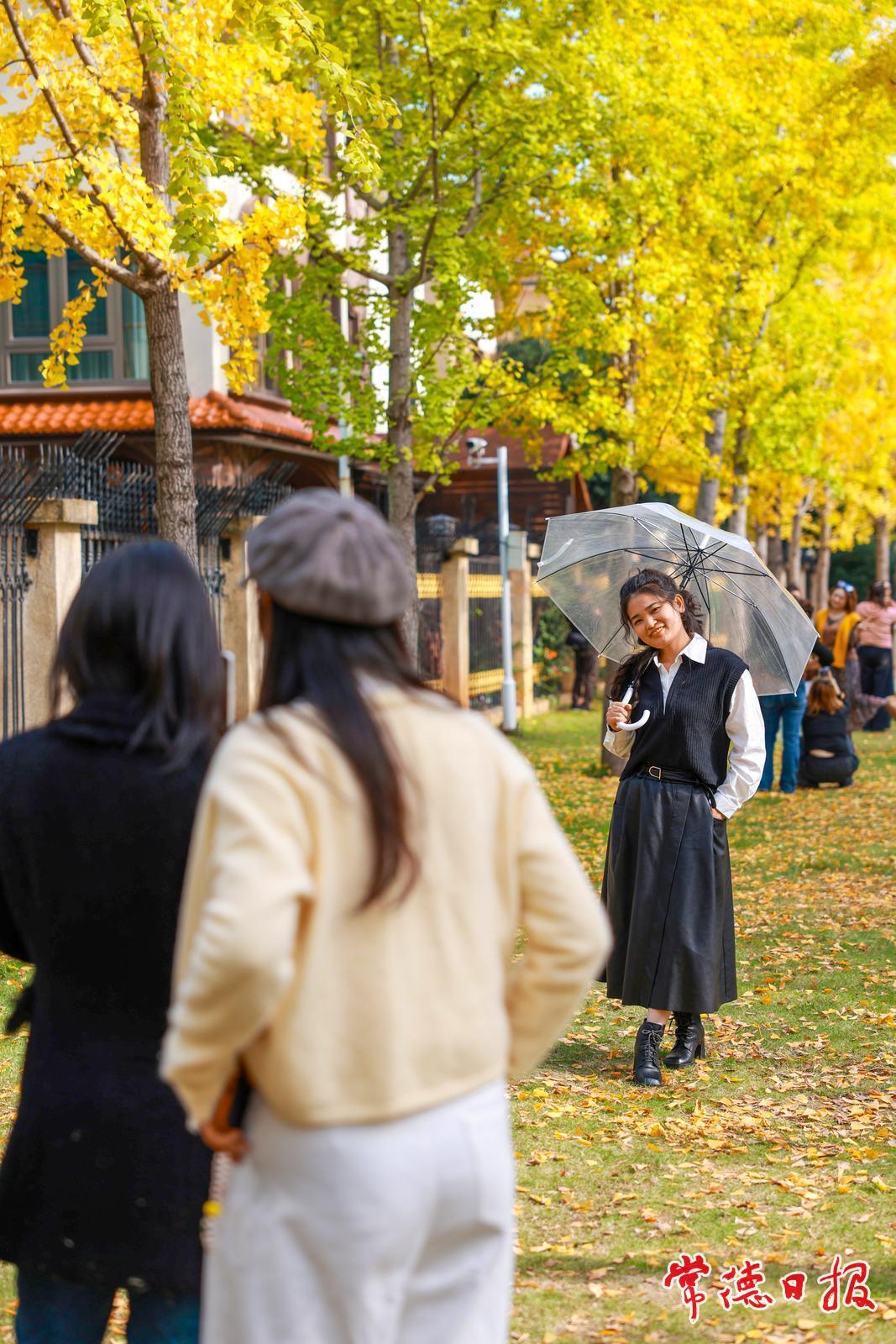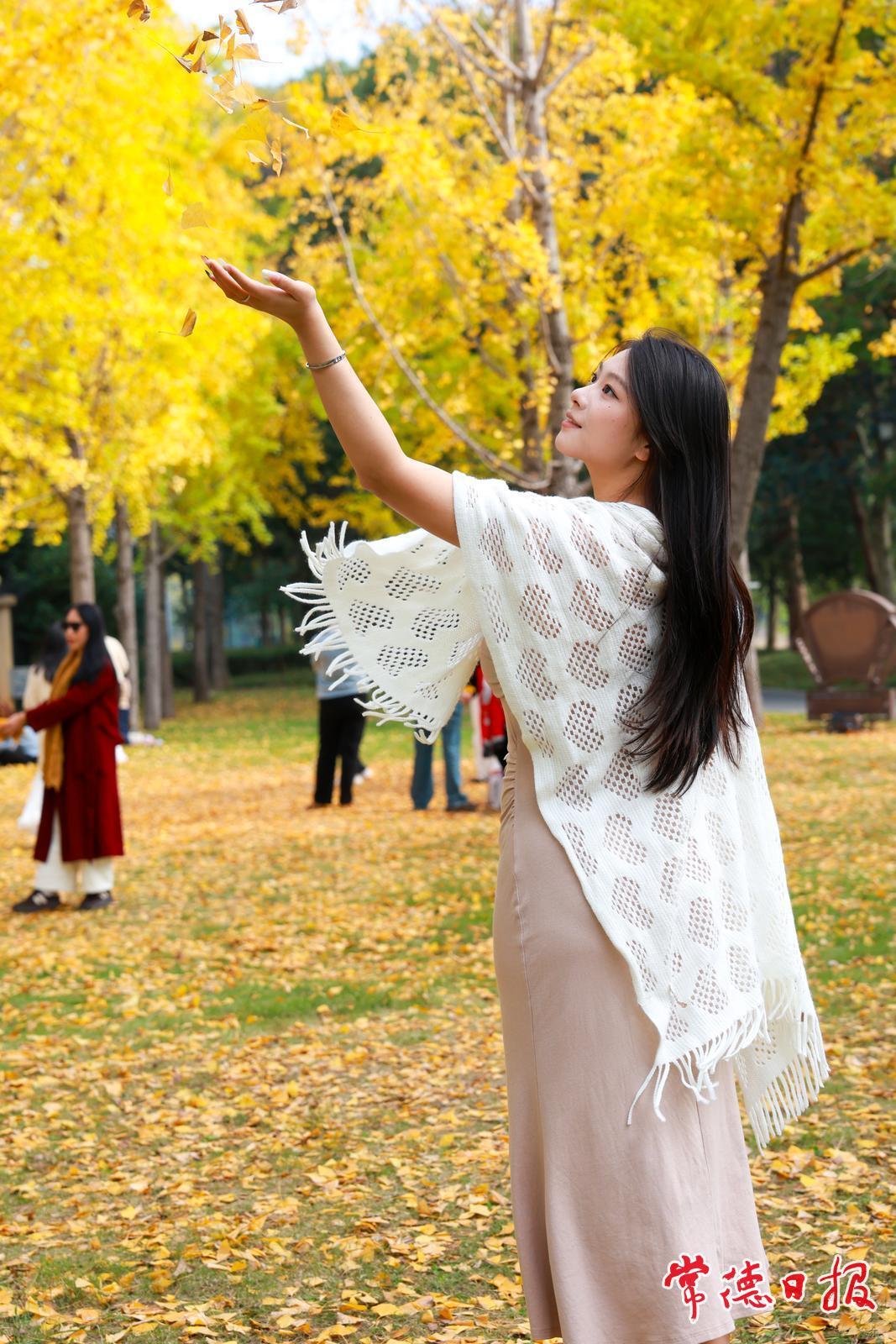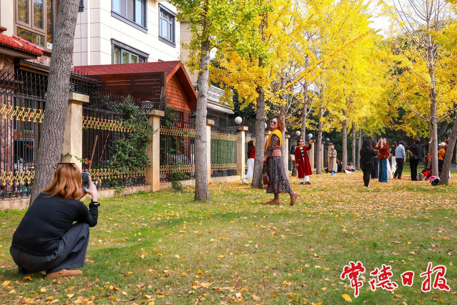 初冬时节,常德市穿紫河畔一片银杏林悄然“镀金”,迎来了一年中最绚烂的观赏期。沿市城区柳叶大道西行约3公里,临近金色晓岛小区,便可遇见这处如画景致。微风轻拂,扇形银杏叶如羽飘落,在草地上铺开一层暖意融融的“黄金毯”。不少市民游客驻足林间,取景拍照,记录下这属于冬日的浪漫瞬间,感受自然赋予城市的诗意时光。