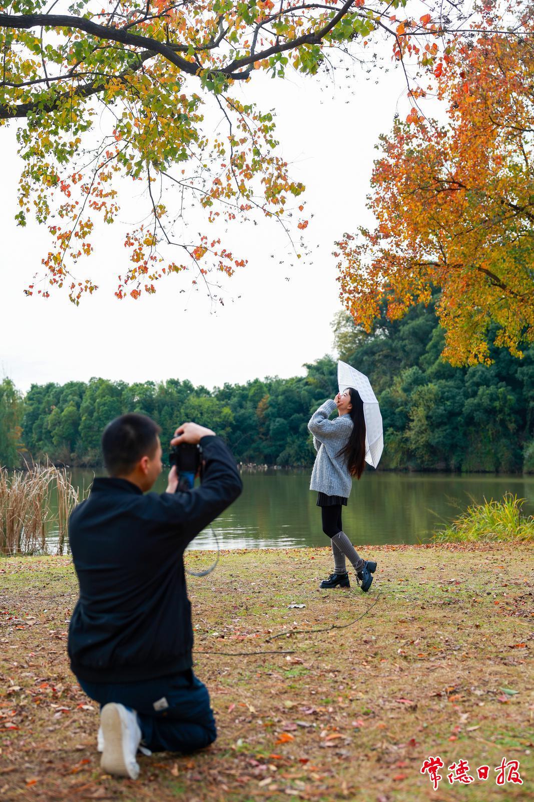 11月18日,在常德市城区罗湾大桥临天利天鹅湾小区一侧,一片乌桕树林披上了红叶的盛装。大自然仿佛挥洒着斑斓的画笔,将这里点缀成一幅色彩浓郁的油画——红叶如火,湖水碧绿如镜,与远处层林尽染的树林相映成趣。这幅浪漫而温暖的冬日画卷,吸引了众多市民和游客驻足观赏,大家纷纷打卡留念。