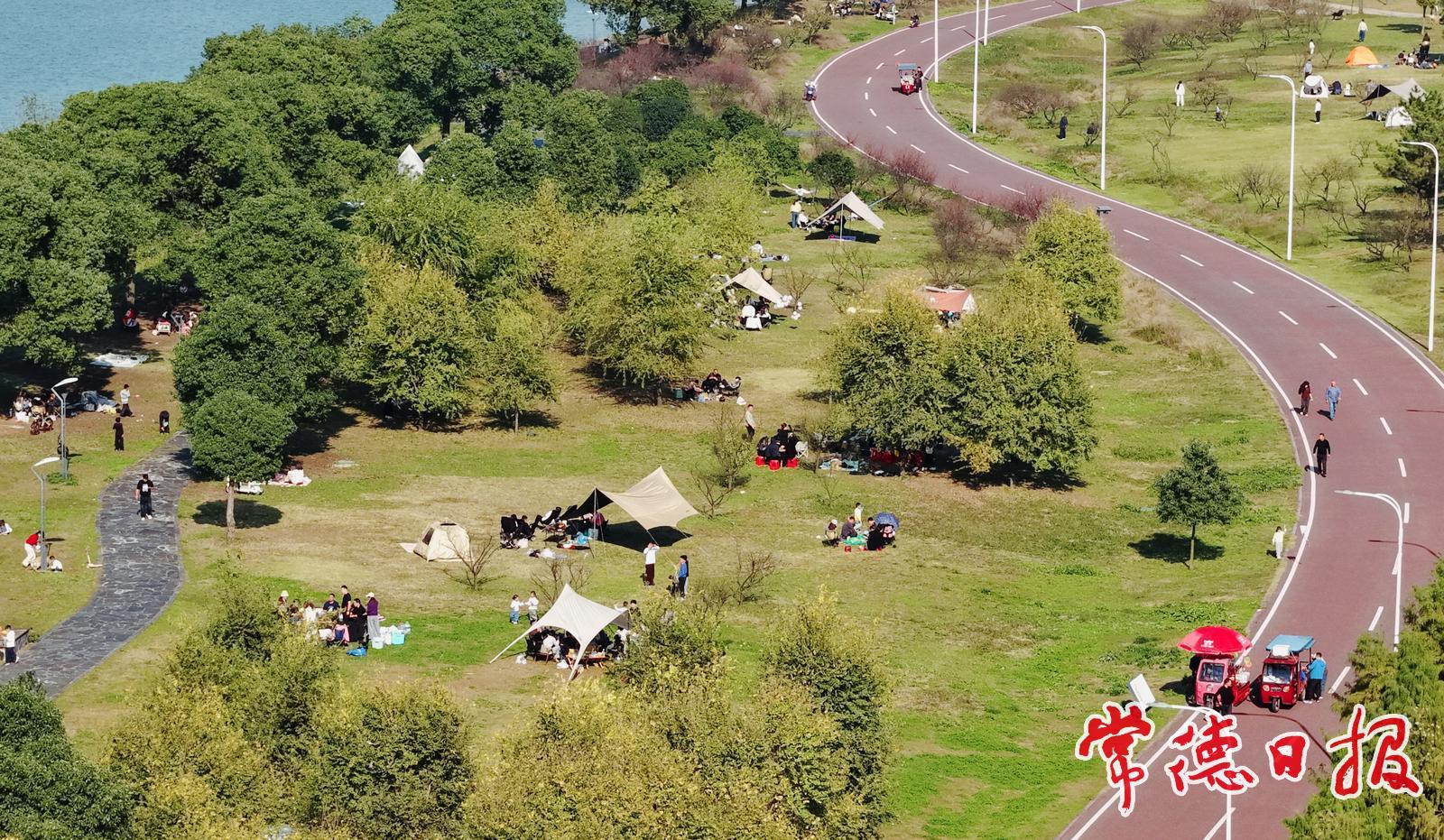 11月22日,正值周末,柳叶湖晴光潋滟,为市民出游营造出绝佳之境。在柳叶湖旅游度假区,游人纷至沓来,在此处支起帐篷,或坐在一旁,凝眸赏秋,或与朋友嬉戏,欢声笑语,尽情沉醉于这美好时光。