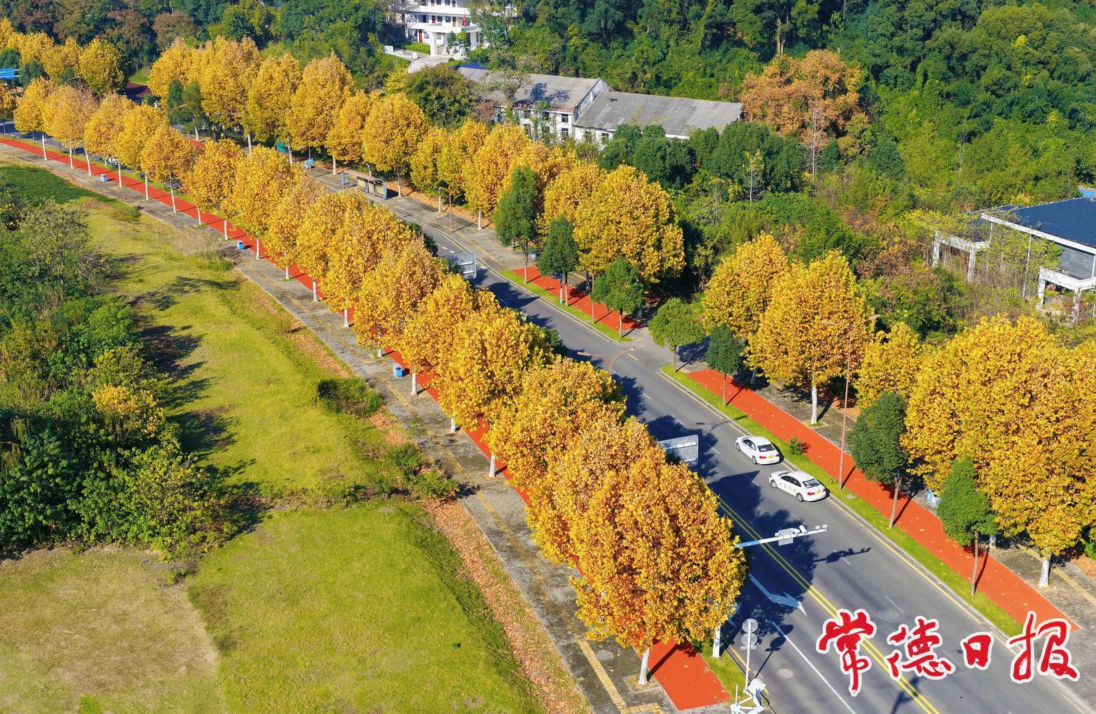 路边的梧桐树披上了金黄的盛装