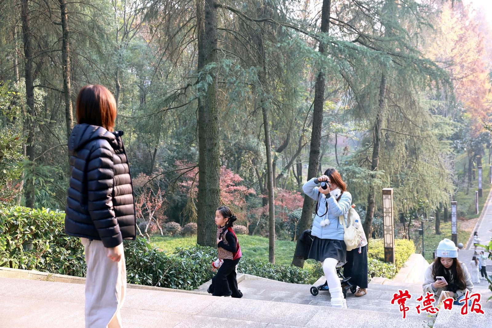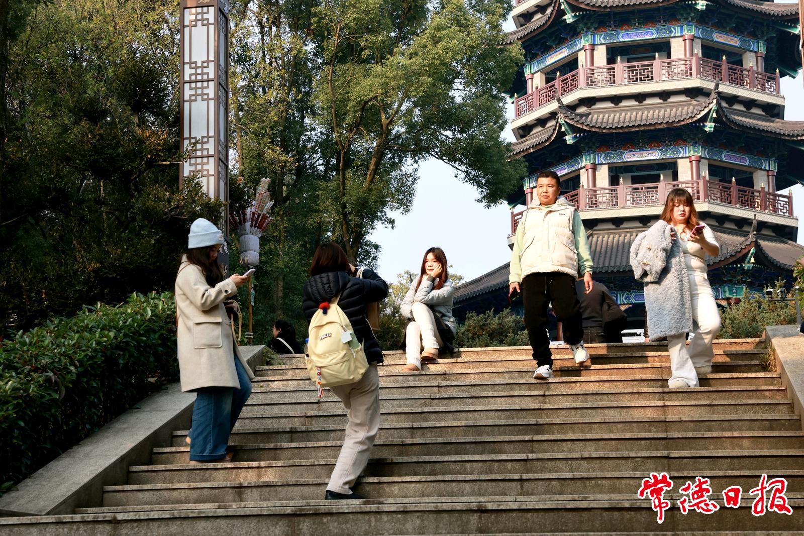 12月7日,常德市天气晴好,暖阳高照。常德孤峰公园内山水掩映,景致宜人,吸引了众多市民游客前来漫步游玩、拍照打卡。