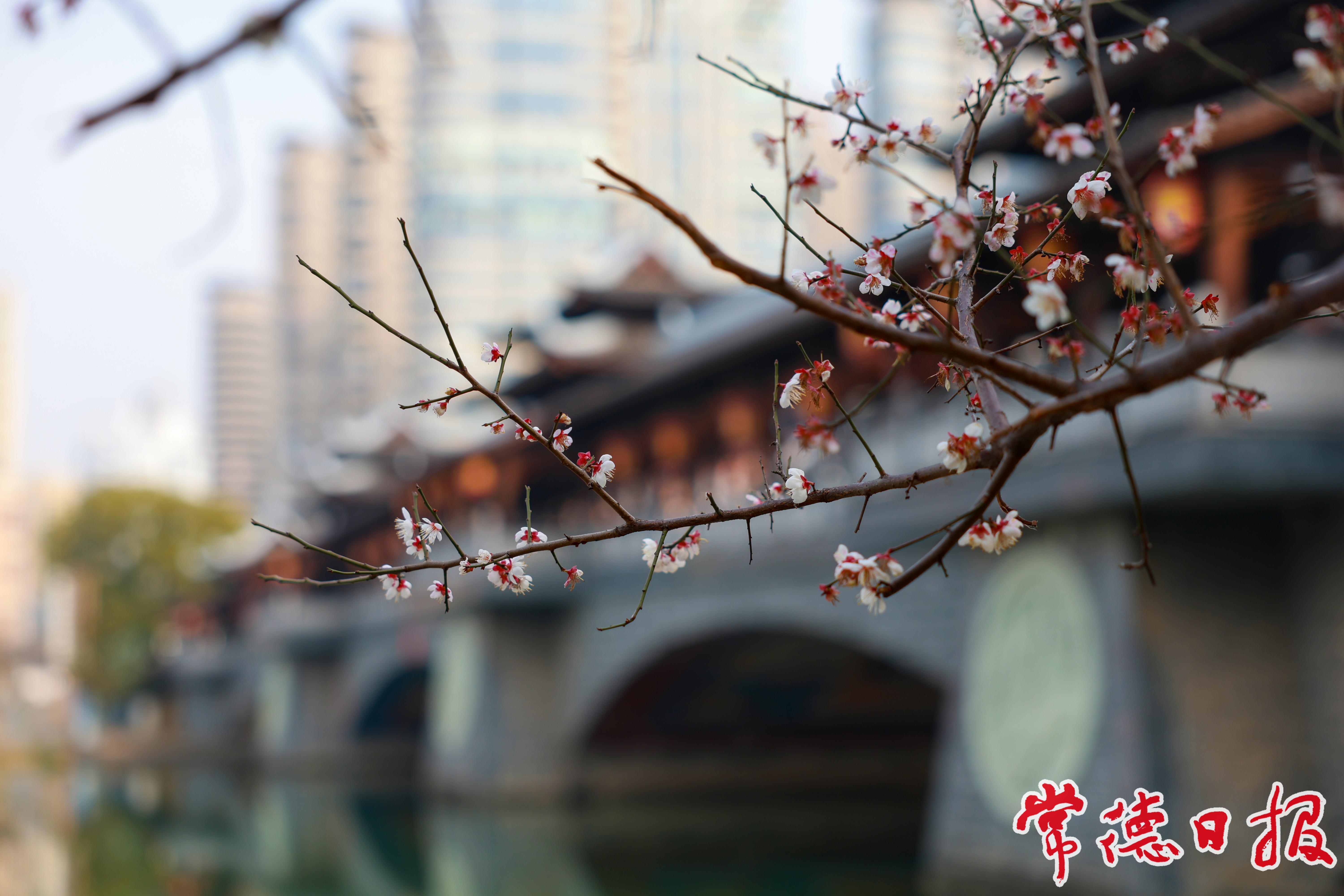 1月12日,常德市城区穿紫河畔的七里桥边,梅花悄然绽放、暗香浮动,吸引着过往行人驻足欣赏。据了解,常德市从2004年开始系统整治穿紫河,2015年成为全国首批海绵城市建设试点城市,如今,穿紫河两岸已成为市民休闲娱乐的好去处。闲暇时分,市民漫步于七里桥边,既能欣赏梅韵芳姿,又能感受河清水绿的生态之美,惬意十足。