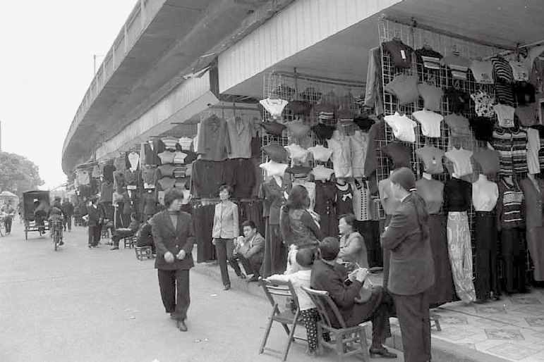 津市大桥商场1989年大桥通车后,北岸引桥下为商场,一时成为城市商业集中处。沈志勇 摄