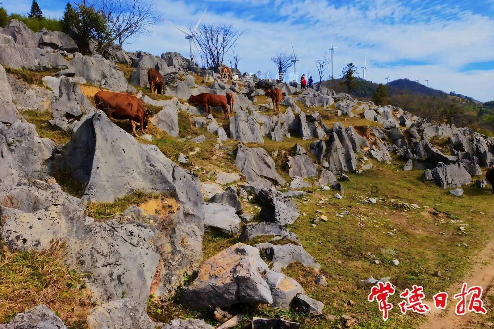 石门县上马蹬高山石草场位于海拔1200米的柘刺岭,万亩草场点缀在白云之下、青山之间、怪石之中。春日自带山雨,夏日自带凉风,秋日自带霜叶,冬日自带白雪,是我国南方遗存在天外的高山草地。