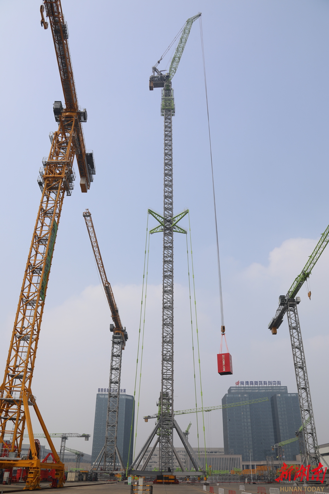 3月12日,常德高新区中联重科建起公司生产的新型风电塔机正在进行承重起吊。该公司瞄准市场需求,大力开展科研试验,研制生产的风电塔机供不应求。向波 摄