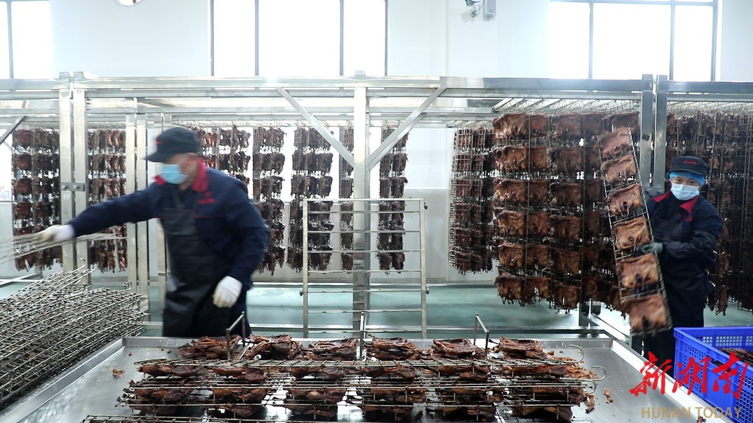 3月15日,湖南湘佳美食心动食品有限公司智能工厂,卤制、炒制、封装自动化生产线高效运转,石门土鸡、石门肥肠、预制钵子菜等特色产品批量下线,经严格检验后,通过专业冷链物流直发全国商超、电商及新零售渠道,让石门特色美味走向千家万户。作为湘佳牧业全产业链重点项目,该企业立足石门优质畜禽资源,以标准化、智能化生产打造特色农产品深加工标杆。石门融媒 供图