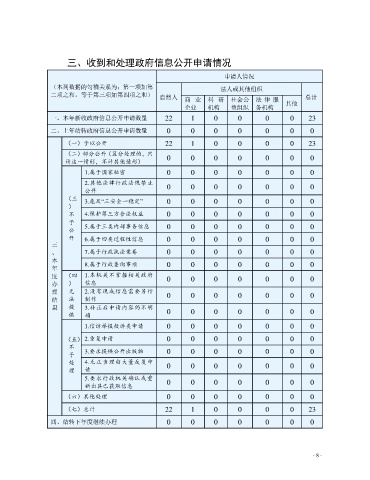 一、本年新收政府信息公开申请数量 22 1 0 0 0 0 23