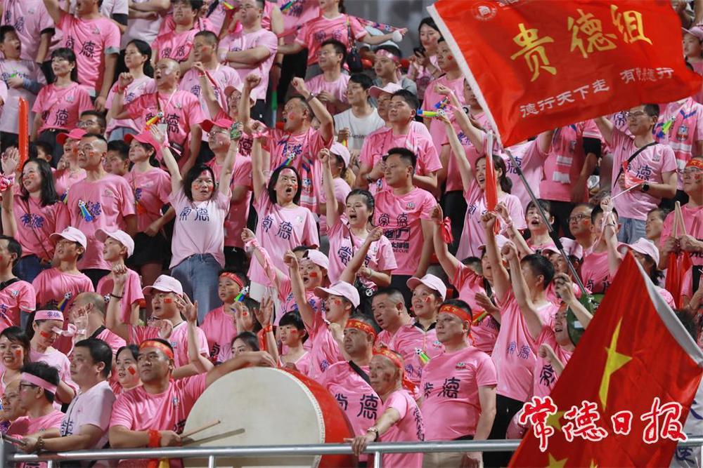 常德队“粉色远征军”球迷方阵格外打眼。裴维维 冯顺前 摄