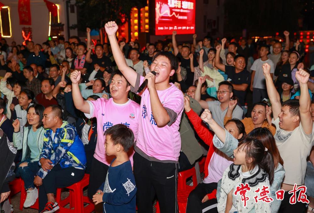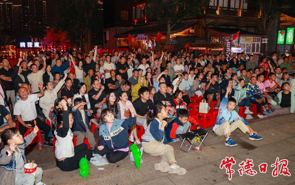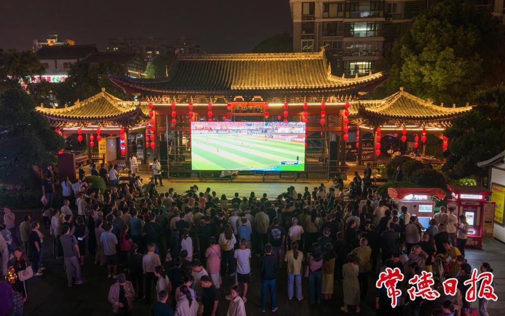“常德队,加油!常德,必胜!”10月11日晚,熟悉的助威声再次响彻常德河街。常德河街状元门及西街汉诺威广场的户外大屏前,汇聚了从四面八方赶来的市民与球迷,为家乡球队隔空助威。