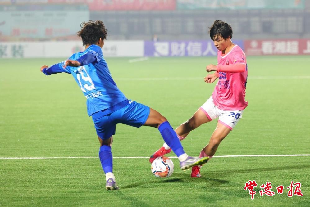 比赛当日,常德主场依旧是一片粉色海洋,座无虚席的看台是城市足球热情的注脚。开场后,常德队尽显“砺刃”之师锐气,攻防两端拼劲十足。第18分钟,陈嘉星劲射破门,瞬间点燃全场。这位贡献本场唯一进球的球员表现格外亮眼,多次完成精彩传中与突破,连续反抢展现极佳状态,成为赛事直播镜头下的焦点。这粒进球,也是他打入个人“湘超”联赛的第2粒进球。