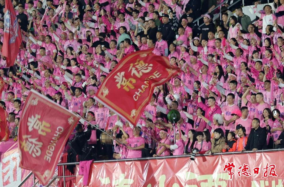 常德队球迷庆祝呐喊。常德日报记者 徐珊珊 摄