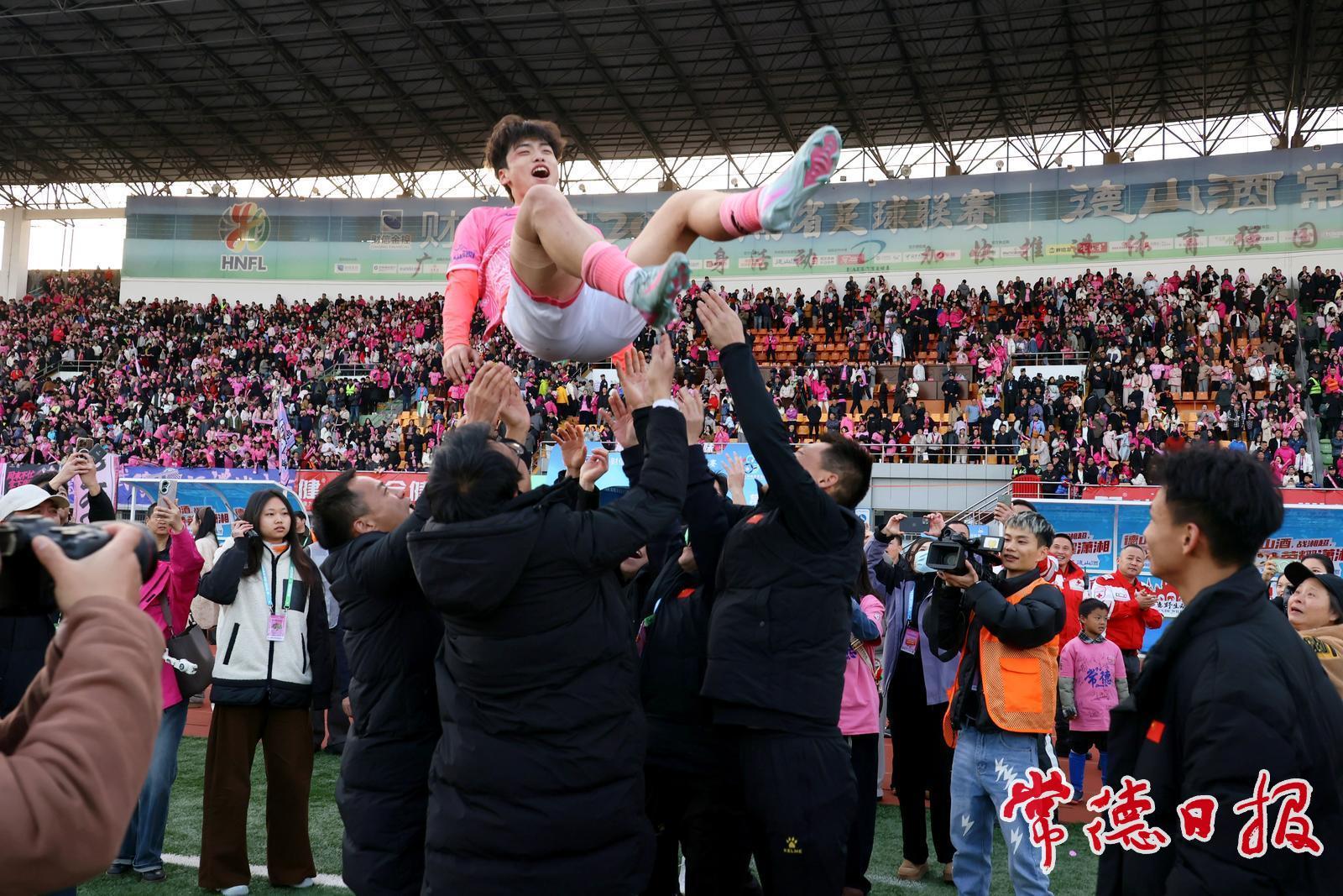 当天,常德队1:0绝杀衡阳队,挺进“湘超”四强。一球定局的背后,是少年英雄袁晖凯的横空出世,是赵文荻的绝妙一传,是老将王峰琦拼尽全力的热血守护,也是后防线上李嘉睿、陈金剑、李嘉琪、杨宇巍、罗剑洋等球员筑起的钢铁屏障。这支“粉色军团”用十余场拼搏,不仅给球迷留下了激情瞬间,更将团队的团结友爱与拼搏精神展现得淋漓尽致。