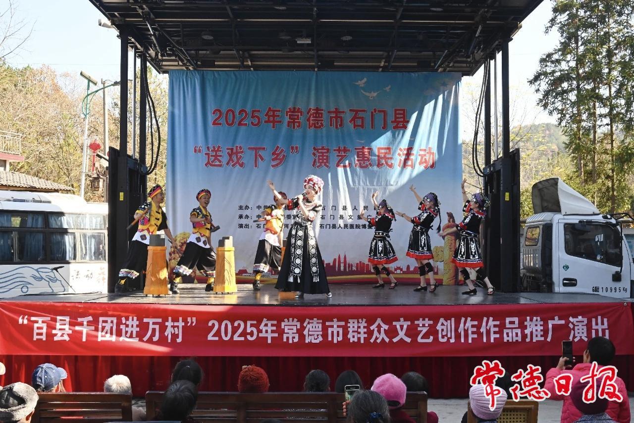 11月28日下午,“到群众最需要的地方去 百县千团进万村”——2025年群众文艺创作作品推广演出在石门县雁池乡重复桥村村部火热上演。本次活动由常德市文旅广体局主办,常德市文化馆和石门县荆河戏剧团联袂演出,共同为常德市文旅广体局帮扶点村——石门县雁池乡重复桥村和里山河村的乡亲们带来了一场丰富的精神文化盛宴,让老百姓在家门口就能欣赏到高品质的文艺节目,感受文化的魅力。