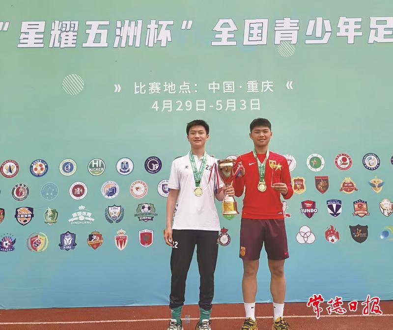 从常德市德善学校走出的卢琦政(右一)参加2023“耀·星耀五洲杯”全国青少年足球比赛U14组获季军。(图片由常德市德善学校提供)