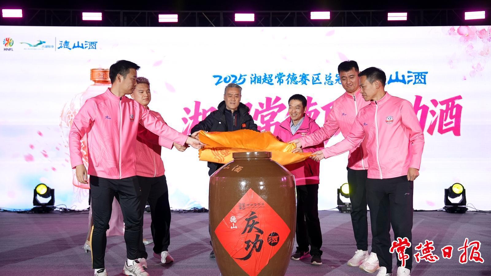 随后,庆功酒开坛仪式启幕,球员代表携手开启佳酿,德山酒香萦绕间,大家共庆“湘超”征程的优异战绩,定格下属于常德足球的荣耀瞬间。京剧联唱、乐队献唱、少儿街舞轮番上演,深情诠释对家乡球队的热爱与期许。盛典暖心环节中,球迷代表还讲述了追随球队的故事,场面温馨感人。