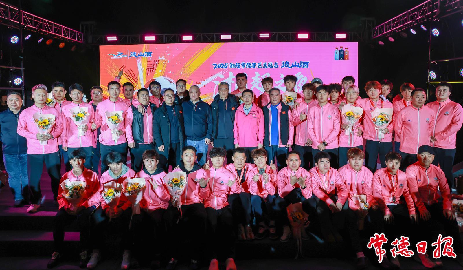 12月28日晚,“湘超”荣耀之夜活动在常德河街西街汉诺威广场隆重举行。活动现场精彩纷呈,不仅有乐队倾情演出与京剧经典联唱,常德队球员赵文荻更现场献唱《我是真的爱上你》,全体队员随后合唱歌曲《海阔天空》《真心英雄》,将气氛推向高潮。据了解,本次活动既是对球队过去一赛季拼搏历程的深情回顾,更是一次与广大球迷和整座城市共叙情谊的温情之约。