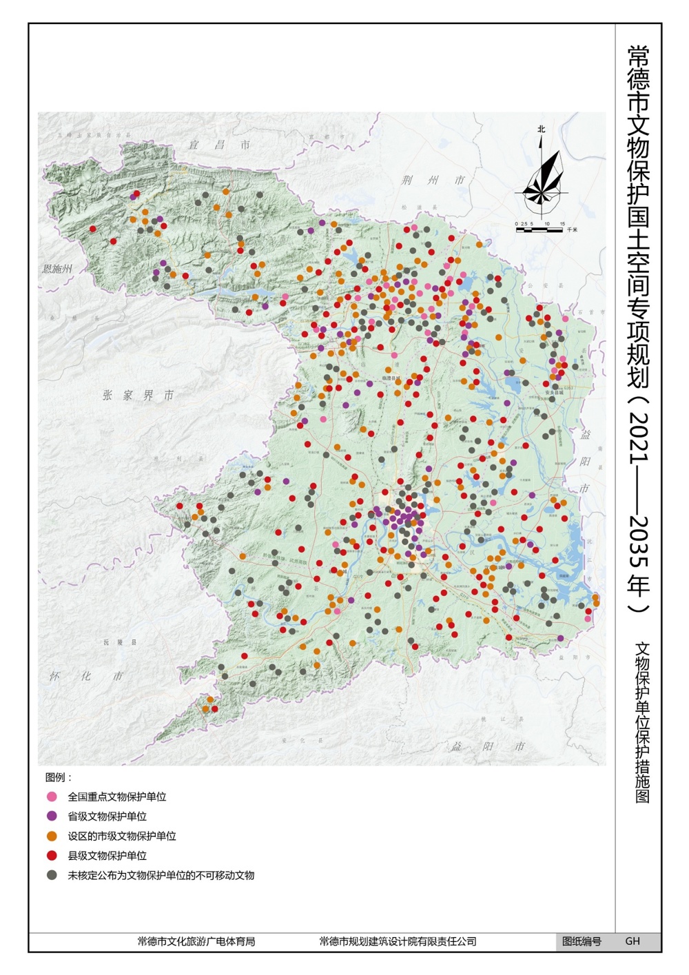 (1)划定市辖区内文物保护单位的“两线”,即保护范围线和建设控制地带,并将数据库纳入到常德市国土空间“一张图”管控中。